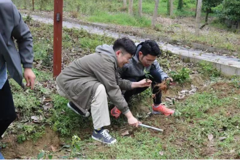 师生参与到茶树种植的过程中,通过自己的劳动种下了新的茶树。参与者使用除草开垦工具,开辟出一块新地,为茶园添绿,为浙农林充“植”