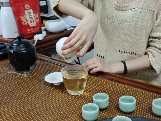 In this English corner, we prepared refreshments and Fenghuang Dancong (a variety of oolong tea) for everyone. At the beginning of the activity, with the guidance of Kim, the new students made a brief self-introduction. Then we began to have discussion on "Awkward questions for people in different cultural backgrounds." We shared our experiences and opinions about being asked about our grades, salaries, and marital status.We also shared our views on other topics, such as "What do you think is a good job?"