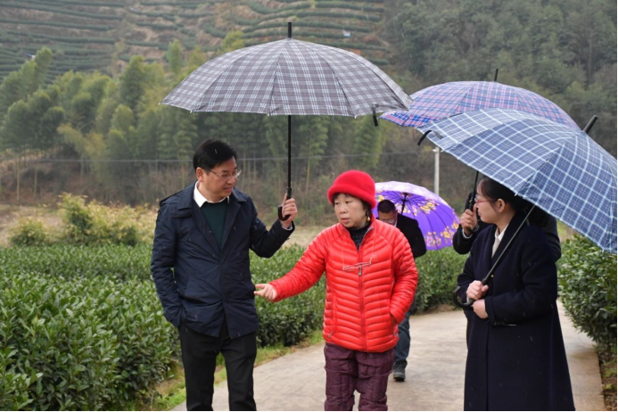 座谈会上,春建乡党委书记叶金、乡长毛超彦向王旭烽主任等介绍了春建乡茶业发展现状以及未来以茶叶制造销售为基础,注重茶衍生品、茶文化产业的发展路线,并请求学校老师提供指导。