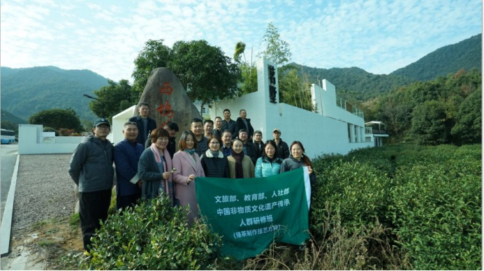 12月4日上午,非遗传承研修课堂来到了杭州龙坞九街,学员们在浙江农林大学茶文化专业14级毕业生钱承欢的讲解下参观并了解了龙井茶的前世今生。在杭州西湖龙井茶叶有限公司戚英杰先生的介绍下,学员们深入了解龙井茶申遗的全过程。之后学员们来到茗墅茶庄园参观,与茗墅茶庄园负责人成秀华进行座谈会并举行结茶亲仪式。