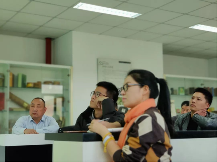 林老师从“小罐茶,大师作”说起,提出发掘非遗元素,进入市场、带动旅游、融入生活,发展非遗经济、创意经济、体验经济、服务经济等概念。林老师重点讲解了鲜叶摊放这一工序中的茶非遗。并抛出问题:“你们是怎么进行鲜叶摊放的?”于是大家开始分享自己的经验,课堂十分活跃。