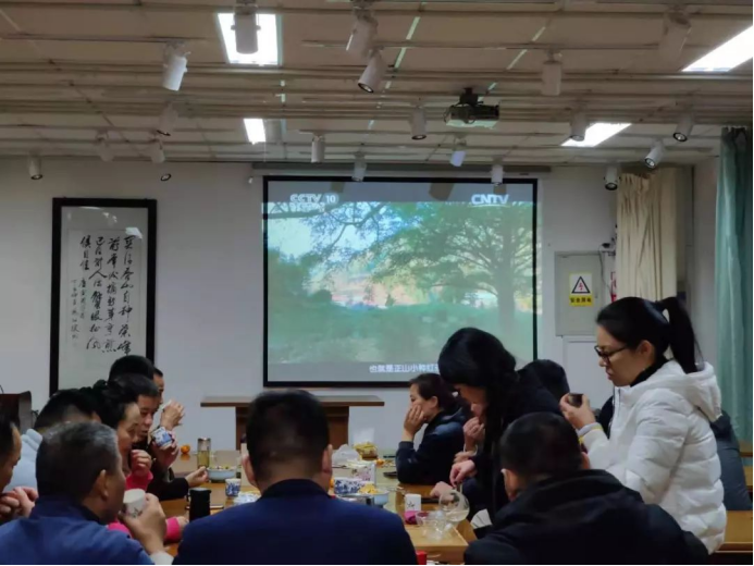 晚上大家在茶文化学院楼的茶艺室观看《茶叶之路》纪录片。