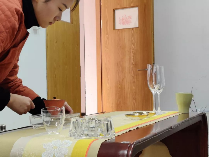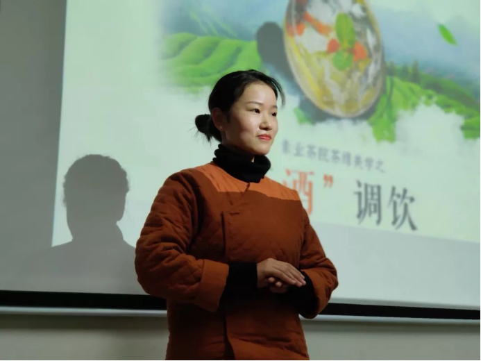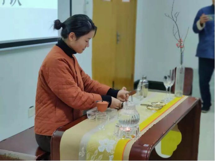 下午,由素业职业技能培训学校副校长、素业茶院西安分院院长、陕西省茶业协会常务理事、2016-2017陕西十佳茶人王若仪老师和素业茶院茶艺实训导、2018年杭州市评茶员职业技能大赛第一名、陈燚芳老师亲传弟子、杭州市”五一劳动奖章“获得者周锦玉老师两人给非遗研修班的学员们带来《素业茶院茶缘美学之“茶酒”调饮》的课程。王老师从茶和酒的渊源开始讲解,让茶文化与酒文化完美融合。