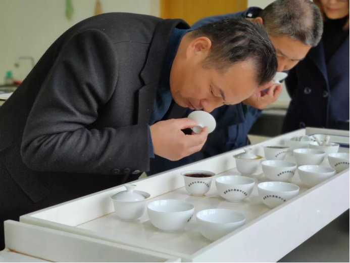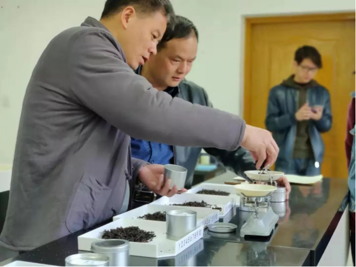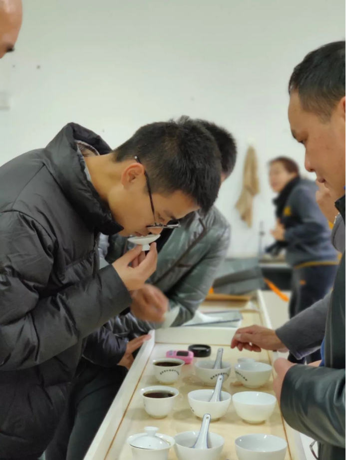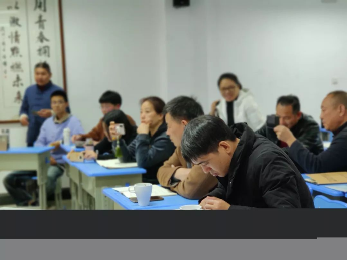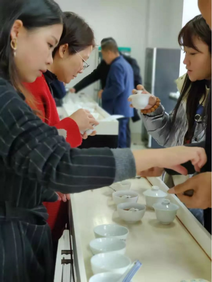 讲完理论知识之后,苏老师开始让大家审评桌面上的乌龙茶茶样,并写出香气、汤色、滋味以及对应的名称。大家都很积极的准备、泡茶、评茶,评完之后,苏老师给大家解释这几种茶的特点以及制作工艺,学员们也很认真地记录。感官审评这一块在制茶的时候非常重要,这次的课程让大家都受益匪浅。