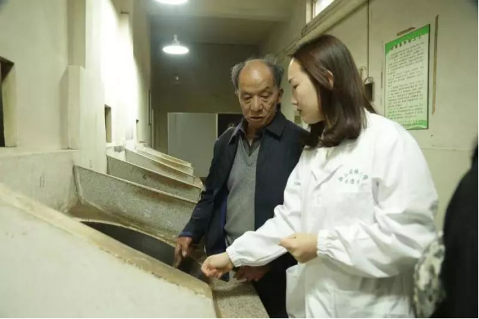 茶园参观结束后,学员们开始了期待已久的第二次实训——苏州碧螺春手工炒制技艺实训课程。进入炒茶车间,学员们四人一组,一组一锅,周永明和沈四宝等四位苏州市市级非遗传承人一人两锅教授学员们学习碧螺春的制作技艺。碧螺春的制作技艺包括:高温杀青—热揉成形—搓团显毫—文火干燥。传统的制作技艺将杀青和热揉分为两部分,创新后则只需用一锅就能完成杀青、揉捻和干燥的全部过程,并且利用煤气生火,实现了炒制过程的清洁化。