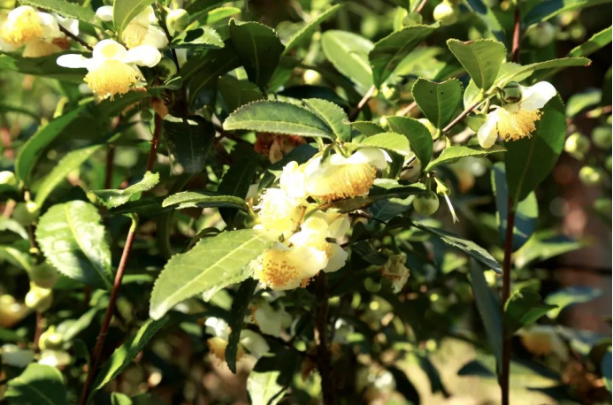 据顾站长和周老师介绍,这片基地现在已经停止采摘生产了,只进行保护和留种。目光所及之处,都是套种的茶树和果树,有的看似细矮的茶树实则已经几十年了。