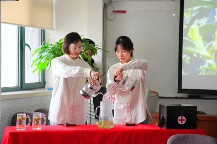 吕畦莹:今天来到心目中殿堂级的学校——中国人民大学,从没想过有一天能来到这里进行学习交流,真的是一次难得的机会,我们自己心里是非常激动和喜悦的。下午,我们来到外交学院,又见识了另外一番风景。茶为国礼、茶叙外交,既促进了各国之间的交流联系,又推动了我国茶文化的传播与发展。晚上,王老师指了我们现有的两桌茶席和茶艺呈现,再结合上这几天来我们的表演经历,让我们受教很多。每一个细节都要到位,每一个动作都是一次亮相。表演要有标点、有节奏、有感情,上台时的一口气要贯穿始终。我们也会在一次又一次的实战呈现中锻炼自己的舞台展现能力。
