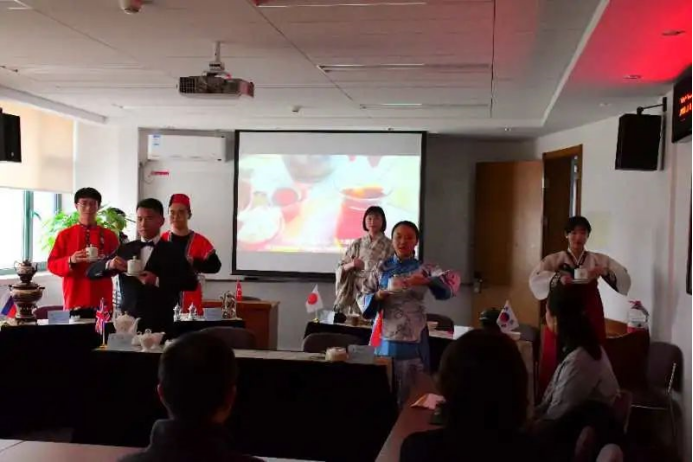 下午三点,基地北京交流团一行人抵达外交学院。外交学院培训学院负责人高明热情接待了基地师生一行人。在王旭烽老师开始讲座前,大家一起观看了介绍外交学院发展历史的视频,感受了我国外交事业的不断发展;这使我们受到了极大的鼓舞。之后,基地师生为与会人员带来了《国际茶日——国际杯》茶艺呈现。演出后,包小慧老师向大家介绍了此次茶艺呈现的创意理念由来和浙江农林大学茶文化相关专业课程内容。