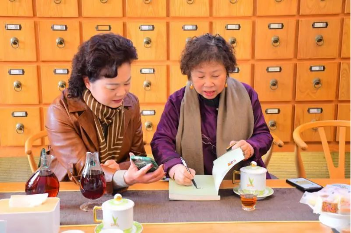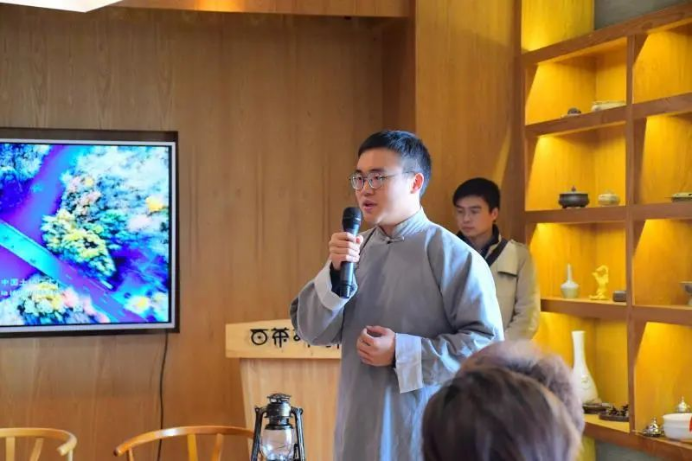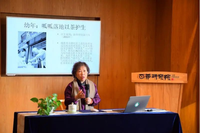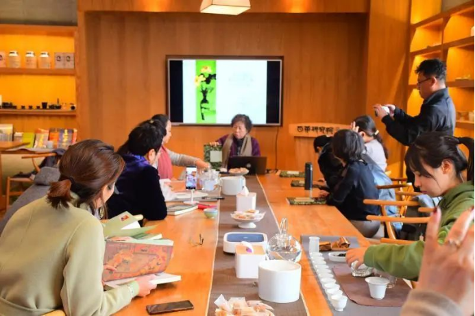 下午一点五十分,王旭烽教授为大家带来《茶文化通论》课程分享,描述了茶的美学价值,阐述了文化和茶文化的定义。王旭烽教授还提出,茶文化里有很多细节,比如:茶叶的名字也是茶文化的重要部分——茶叶的取名是很值得深思的;茶叶制作中的文化也是常常被人忽略,也应当引起人们的注意。最后,王旭烽教授讲解了由她担任总撰稿的《茶,一片树叶的故事》纪录片。大家合影留念后,在马连道茶城的活动圆满结束。