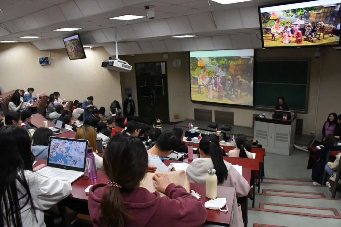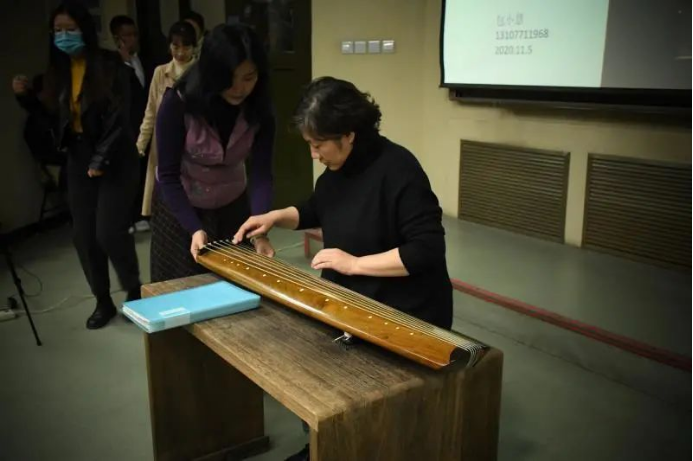 晚上七点五十分,包小慧老师为大家带来“古琴与茶”课程,带大家走进古琴的世界,从琴之器、记谱方式古今流变、琴之韵味三个方面向大家介绍了古琴文化。包小慧老师详细讲解了古琴的制造历史和古琴上各个部位,阐述了琴和人之间的关系,同时在最后给同学们带来了一些关于学习古琴的建议。在同学们热烈的掌声中,今天的学习交流活动圆满结束。