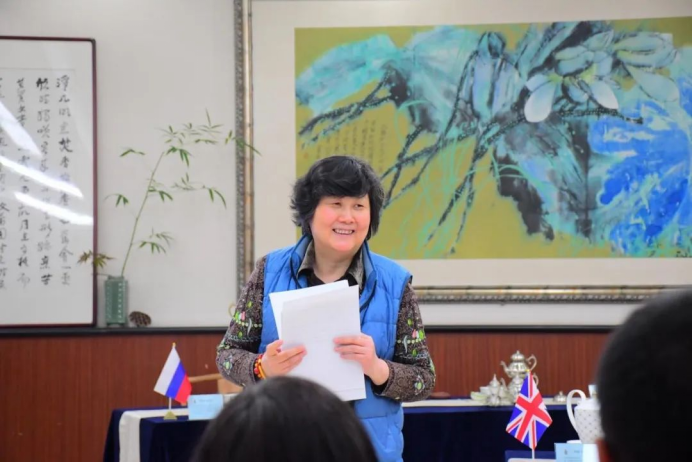 下午一点左右,基地主任王旭烽教授与基地茶文化艺术呈现负责人包小慧老师,带领基地师生和基地杭州站四位工作人员,出发前往北京语言大学。北京语言大学的工作人员迎接并带领我们来到北京语言大学中华文化国际传播中心、汉语速成学院。两点左右,活动正式开始。在北京语言大学中华文化国际传播中心主任迟兰英的主持下,活动缓缓拉开序幕。王旭烽教授对此次活动进行简短致辞。