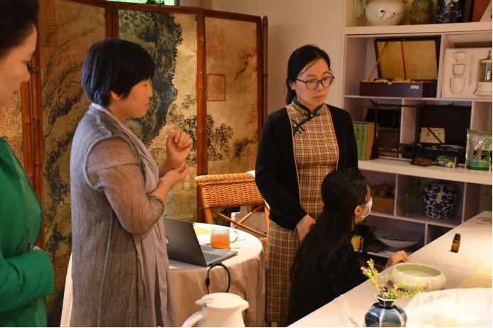 课程最后,唐老师做了回顾与总结,建议学员多在课外摄取,例如皮肤美容、经络等方面的知识,这样才能更好的掌握本堂课的内容。并向同学们展示了,茶芳香疗法运用到茶疗空间的布置思考,为同学们后续的学习提供了参考书目,方便同学们更好的学习。