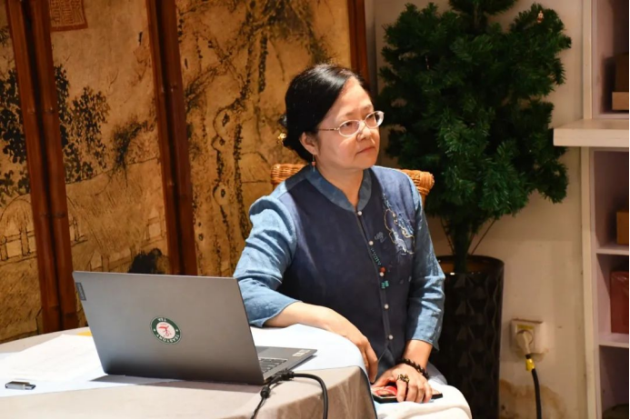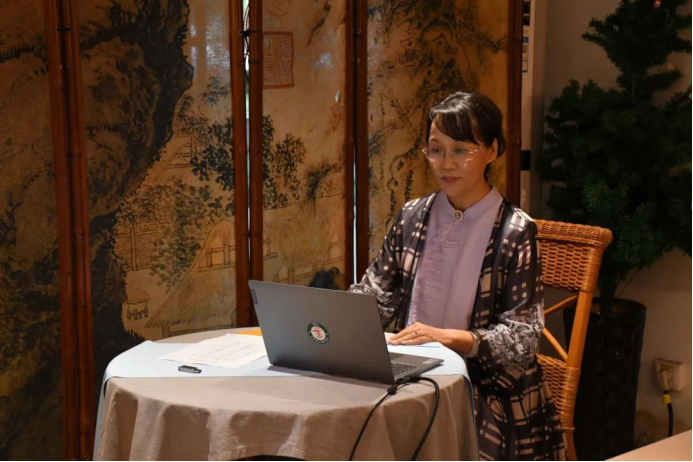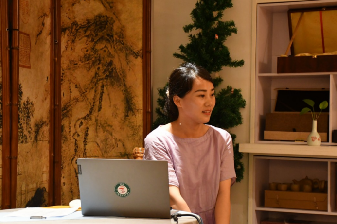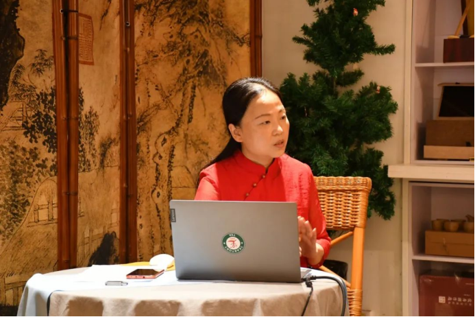 第一位汇报的学员是张平,汇报主题是《疗愈人生是真味》。她认为,人们追随茶的根本缘由是因为茶是疗愈人生的。茶的打开方式有很多种,可以解渴品味,可以健康延年,可以美学艺术,可以文化文明。她表示,要成为一名合格的茶疗师,首先需有“三心”:一颗自足的心、一颗大爱坚定之心 、一颗学无止境之心;还要懂得用“中庸”之道,茶尽盏落,人来人去,通过茶赋予人生疗愈的意义。最后她给课程加入了一点点自己的建议,她希望未来在课程当中能有冥想和实践的内容。
