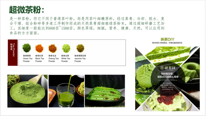 在此基础上,沙建国老师简单地向学员们介绍了目前较为广泛应用于食品的茶的相关事物,如茶的原液、茶碎、超微茶粉和茶的提取物等等。