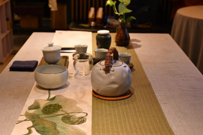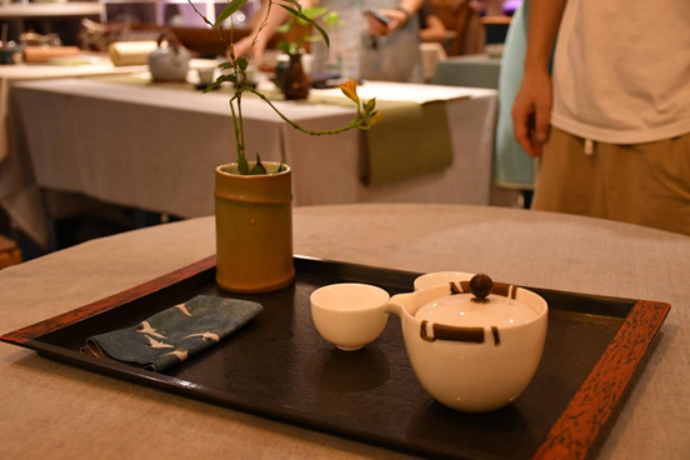 白天的课程结束后,经过短暂吃饭休息,又到了交流茶会的精彩时刻,顾老师首先让学员们各自设计自己喜欢的茶席,接着再一一引导每一位学员说出自己内心的想法,比如先给自己的茶席命名——“荷塘月色”“春秋”“茶之味”等等。
