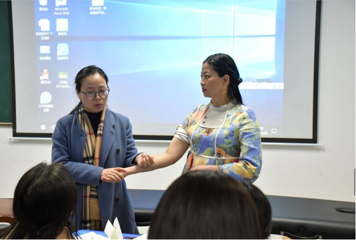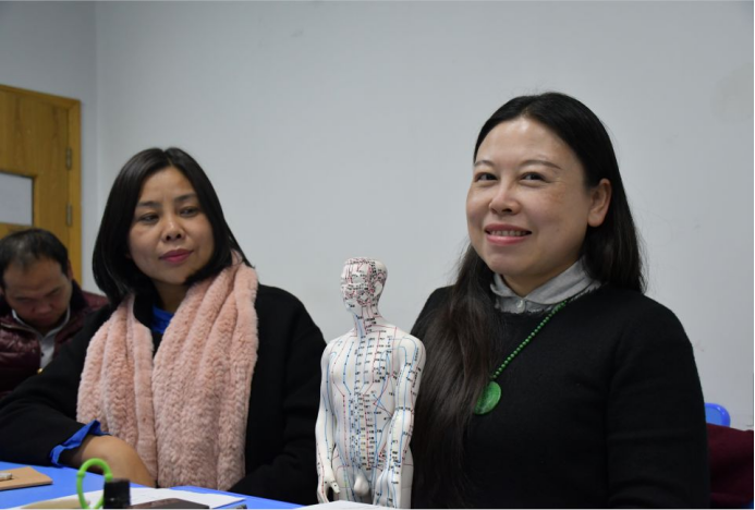 下半节课唐老师为大家带来了人体经络模型,对照模型和课件带大家简单了解了一下一些人体常用的养生保健穴位。