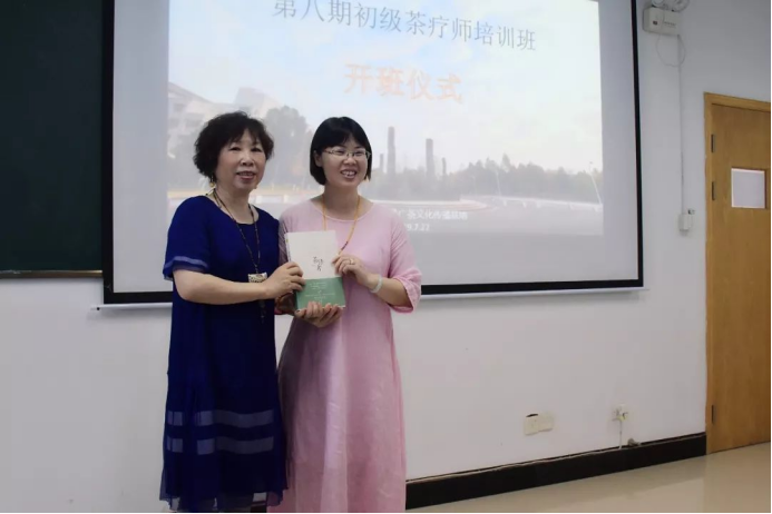 来自全国各地的学员依次上台进行自我介绍,讲述自己与茶疗的结缘故事,表达了对这次茶疗班学习的期待。