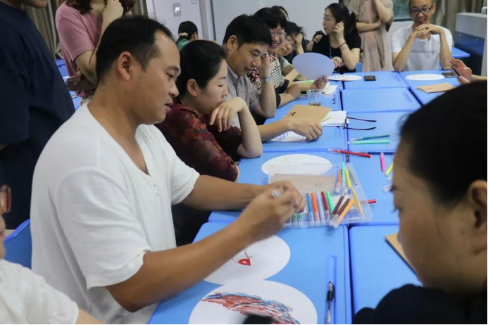 倪老师善于调动学员的课堂参与积极性,创造活跃的课堂氛围。学员通过色彩绘画疗法,使用自己喜欢的色彩进行关于“我”的绘画,在倪老师温柔的导语下,学员们进行与本我的深度对话,寻找灵魂深处的自我。倪老师分析了每位学员的绘画作品,给予每个人独特的解读,学员们站在新的视角重新认识了自我,明确了适合自己的茶疗方向,纷纷表示受益颇深。