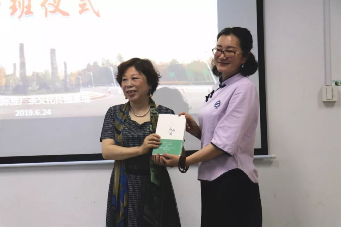 王旭烽教授为本期茶疗班首位报名学员赠送亲笔签名版《茶语者》。