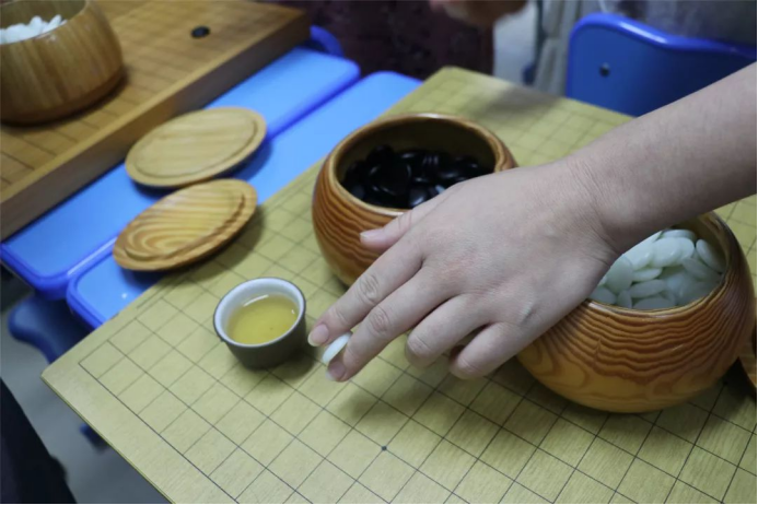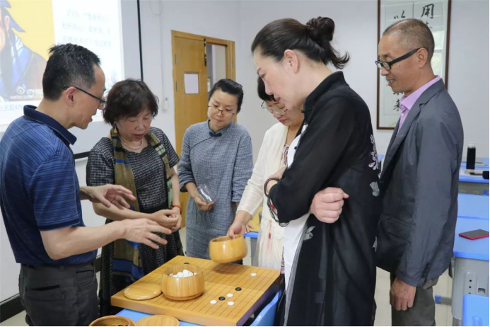 徐老师还把自己的围棋和棋盘带到现场。课间休息时,和学员一起交流棋子的类型、棋盘的材质以及执棋手法等等。通过课堂内容和实际体验的结合,学员们受益颇深。