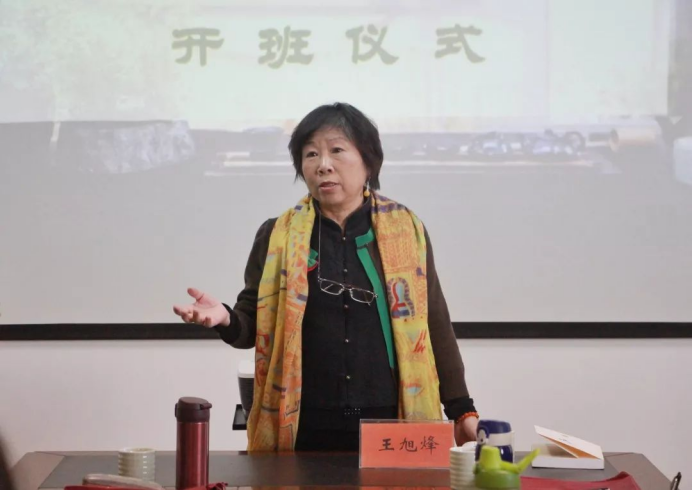 汉语国际推广茶文化传播基地主任,浙江农林大学文法学院名誉院长、茶文化教授、学科带头人,杭州中国茶都品牌促进会理事长王旭烽老师为开班仪式致辞。