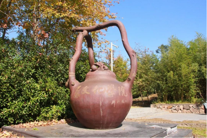 茶文化学院楼前的陆羽铜像十分引人注目,据《茶经》等相关典籍所描述,制作时在陆羽铜像旁增设了唐代烹茶所需的25件茶器,尽可能地再现陆羽烹茶场景。这与国内各地绝大部分或鹤发童颜或仙风道骨的茶圣雕像不同,符合自称“山人”的真实陆羽形象。