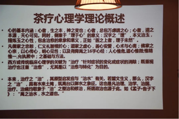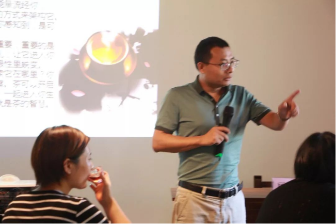 浙江大学心理学专家顾俊峰教授,从心理的本质出发,讲解了基础的心理学理论,并和大家一起讨论茶和心理的关系,以及茶疗师接待、询问、谈话的方式和要领。