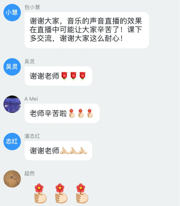 临近课程结束,包老师带着大家一饱耳福,并热情地与广大观众进行互动交流,针对茶疗空间的音乐环境塑造等相关问题对大家进行了指导。