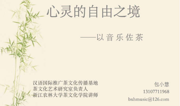 由浙江农林大学汉语国际推广茶文化传播基地(龙源集团共建)主办的“茶疗文化”第四场公益讲座,是由浙江农林大学茶文化学院讲师包小慧老师给大家分享《心灵的自由之境——以音乐佐茶》。